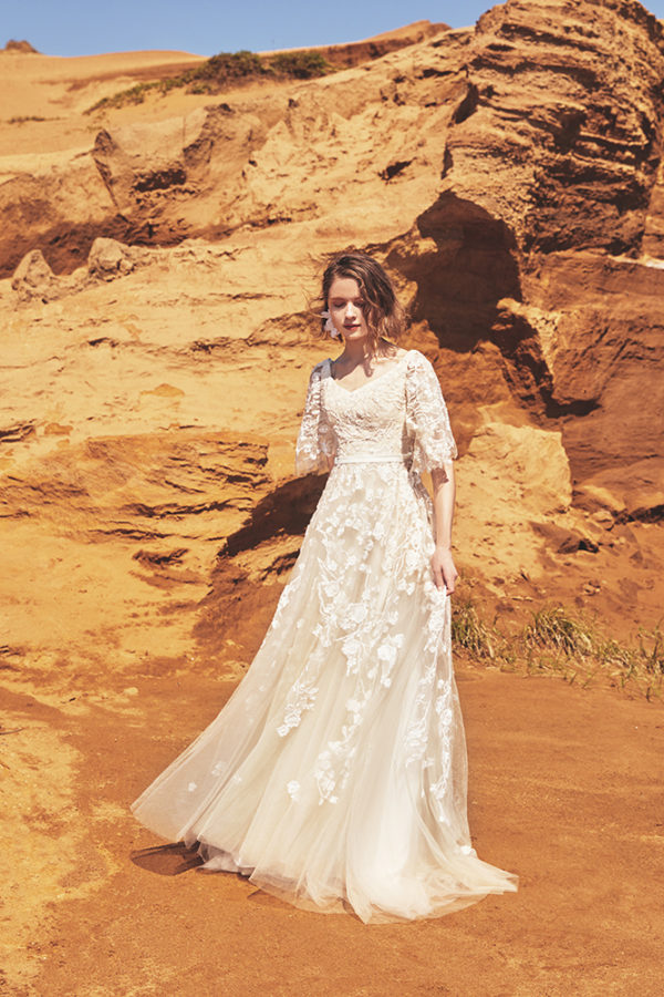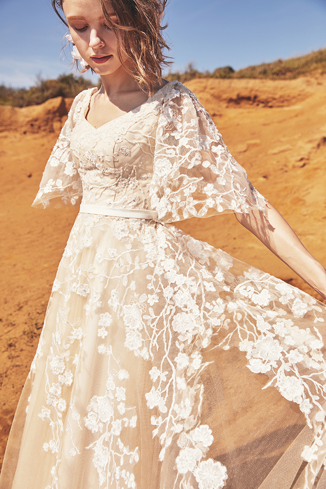 撮影用の簡易な衣裳ではなく、素材・シルエット・刺繍の美しさにまで