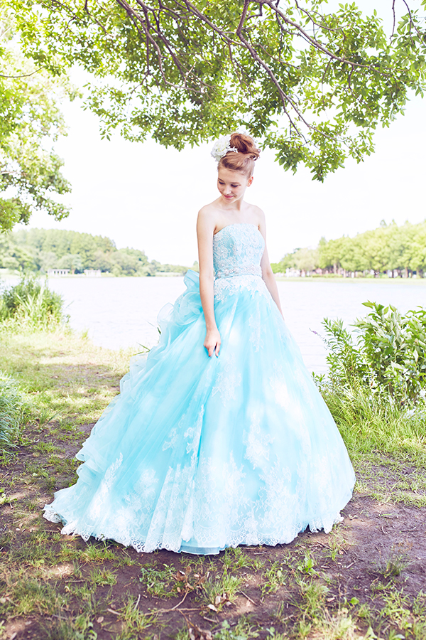 夏らしいカラーのドレスでウェディングフォトはいかがでしょうか?