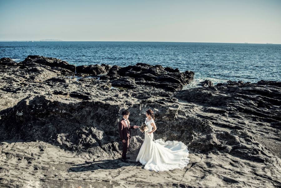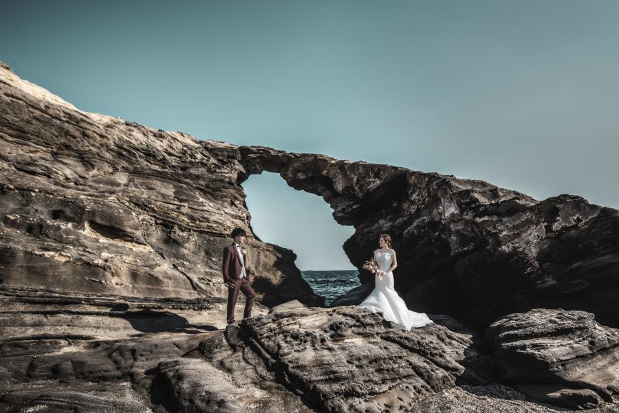 海のブルーと岩のグレーの色味が幻想的な雰囲気に、、♡
