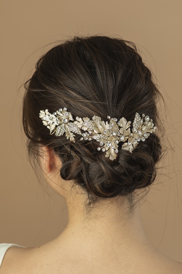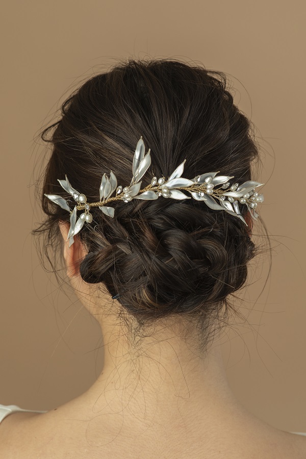 ゴールドと透明感のあるホワイトが印象的なヘッドドレスは黒や茶色の髪によく映えます!