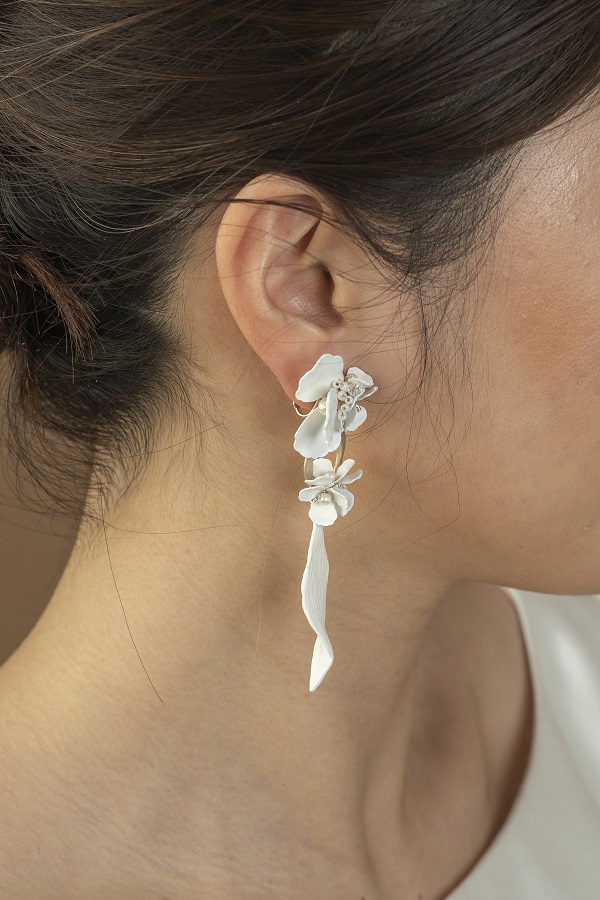 ホワイトのイヤリングはドレスだけでなく白無垢に合わせてもおしゃれです!