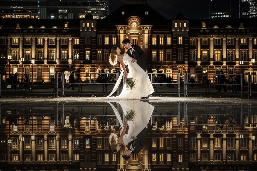 駅舎の前ではドラマティックなポージングで☆ミラーショットが良く映える一枚。