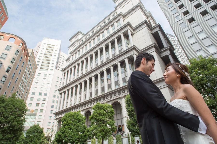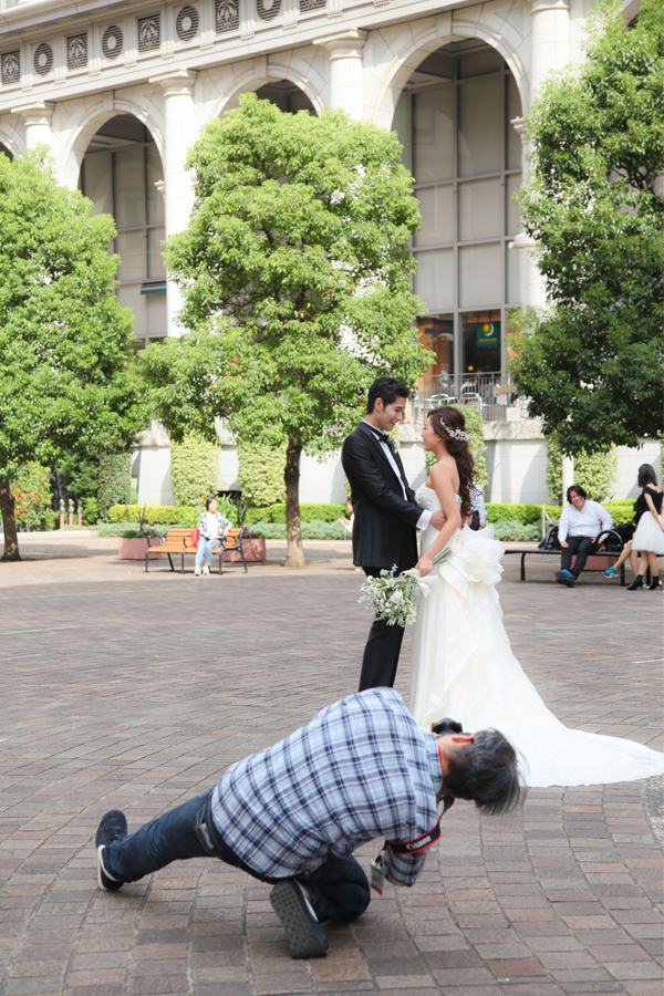 何気ないガラス張りの建物も、お二人が写り込むと映画のワンシーンのようです*。ヾ(。>v<。)ノ゙*。