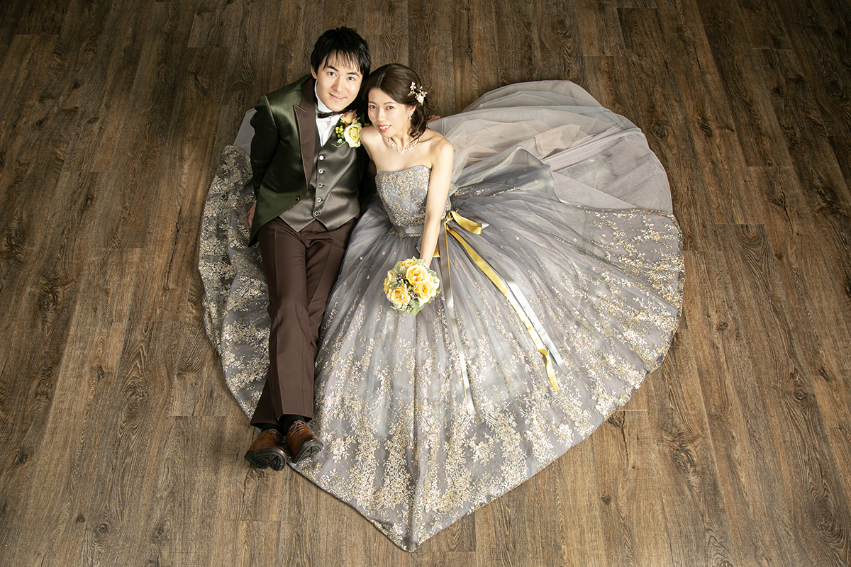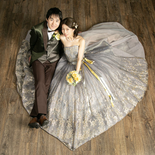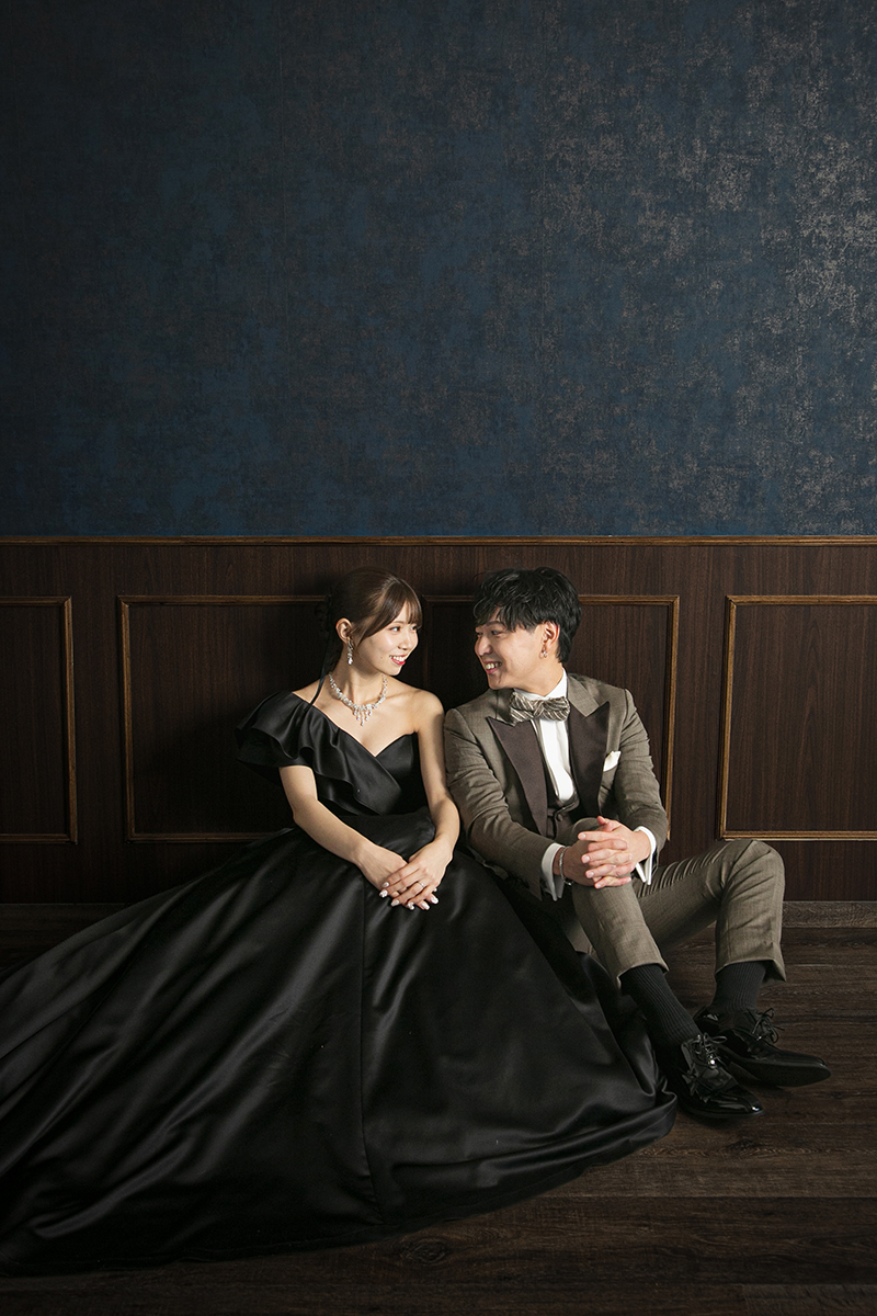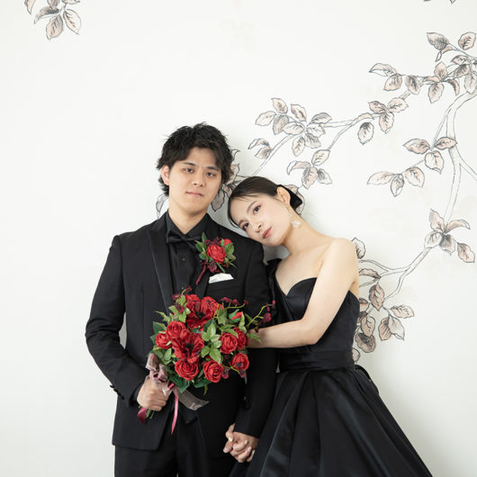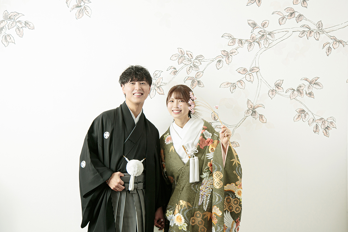 ドレスはもちろん、和装も引き立つ万能な撮影スタイルで、フォーマルな前撮りやポートレート風のカットにもおすすめです。
